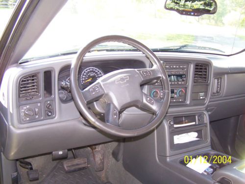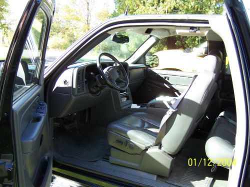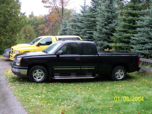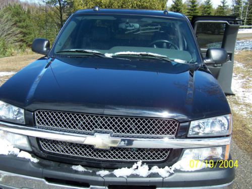 Hello, and thanks for viewing. Please note date on camera is incorrect - pictures are current. This was my Dad's truck and it spent most of it's life in Kansas. It is rust free and not from Michigan where it is located now. I have had it since last September when he could no longer drive. It is a 2004 Chevrolet Silverado 1500 LT extended cab 2WD. This thing is loaded. It has leather seats, heated seat bottoms and backs, power lumber and bolster on drivers side, memory seat, power mirrors, power fold on the mirrors, cruise control, satellite radio availability, On-Star availability, power windows, power locks, tilt wheel, bed rug bed liner, fiberglass bed cover painted to match the truck. The truck is black and has a dark grey leather interior. It also has running boards and a tow package. The truck is in very nice shape for a 10 year old truck but also be aware it is 10 years old. It has a few scratches in the paint and a small scrape in the lower drivers door (barely visible). It runs good and I would feel safe driving it for a distance. In fact since I got it I have driven it from Kansas to Michigan, Michigan to Tennessee and back and it has run great. I use it very rarely or I would keep it. Once again it is 10 years old so it is being sold with no warranty expressed or implied. I welcome inspections and suggest them. Shipping is up to the buyer but I will help out all I can on this end. Please feel free to request additional pictures. Thanks for looking and good luck if you decide to bid. - Added: now that all the snow is cleared off there is a y shaped scratch in the hood (pictured) from ice this winter that may or may not buff out. Just trying to be as straight forward as possible. Thanks.