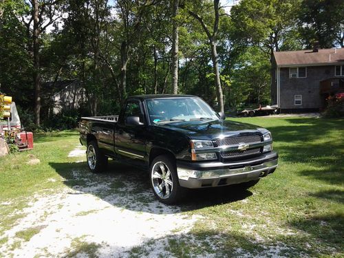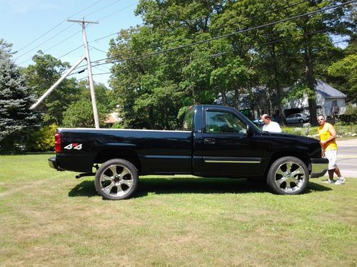 2004 Chevrolet Silverado 4x4 1500 - color black, regular cab, 8ft bed, factory tow package, all the options original owner, 90,000 miles (most of which are highway miles). Truck was mostly used travel to work in winter. 22" rims & tires two tires are new no them