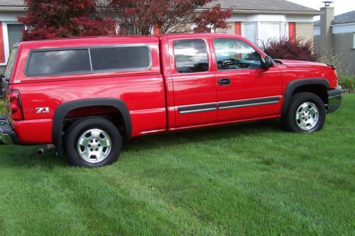 2006 Chevy Silverado 1500, Extended Cab - Z71 Package 5.3L V8, 175,000 Miles - mostly highway. Well maintained with no mechanical issues and no leaks. Power windows, locks, power steering, power mirrors with lighted turn signal arrow Cruise control, Tilt Steering, Air conditioning that very cold and has dual controls Push button 4x4 controls 2WD, 4WD High & 4WD Low, Good Year Wrangler Tires - P265 70 R17 Premium Alloy Wheels with full spare tire, Trailer hitch with 2" receiver. Gray cloth interior bucket seats with no tears or holes. Non Smoker Center console top lid is broken but is all there to fix. Truck has normal wear - with some scratched, chips and dings. Well maintained, no mechanical issues, no leaks. Great driving truck. Truck cab with two side windows that slide and rear hatch that locks. Spray in bed liner. |