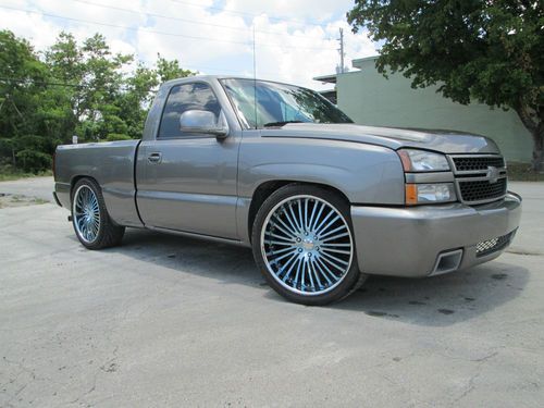 You are bidding on a 2006 chevy silverado,short bed ,reg cab ,5.3 auto trans,pwr locks windows fully loaded,these trucks are hard to find,took me a while to find this one,I am a dealer, I purchased this truck for my personal use,never intended to sell it,This truck does have salvage history I bought it from an insurance company car has been repaired and inspected ,can be tilted and tagged in any state.when bought it had light front damage fender, hood, grille were damaged,all shet metal was replaced with oem parts ,an ss front bumper was installed ,also a 2/4 belltech lowering kit along with a set of 24" COR 3 piece forged wheels,motor is completely stock,so is the interior,tach stopped working last month, replaced the whole cluster truck has 95k on it,nwe speedo now reads 67k. entire truck was repainted with ppg base/clear original color,over all truck is very clean and reliable,have purchased a new truck, just dont need them both,please call if you have any questions 954 601 6691 Dave