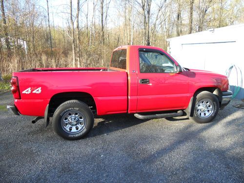 Up for auction hard to find Chevy Silverado, short and wide, 5.3 engine, LS pkg, tilt, cruise, CD player, plow prep pkg, skid plate, towing pkg, tinted glass, Jerico fiberglass cap, low milage 80,470(still driving), factory new transmission at 65000, transferable warranty, new front wheel bearings, new rear drums and shoes, Michelin M&S tires with half the tread left, Excellent condition, 3 small "dings" can be pulled by ding doctor, Mobil One oil changes, owned by professional Marine Detailer, well kept, waxed last week, undercoated and rustproofed. Rino liner in bed. Lockable diamond plate tool box in bed with keys. More pictures will be added.