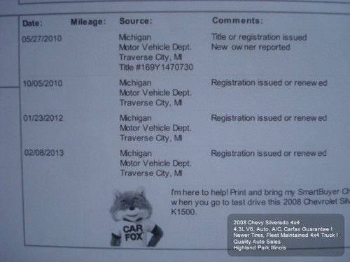 2008 Chevy Silverado 4x4 V6 4.3l Auto Cold A/c Carfax Guarantee Great Work Truck on 2040-cars
