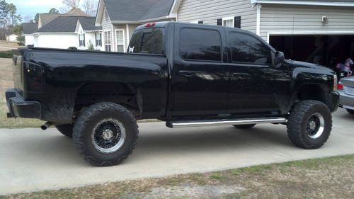This truck has a 6" procomp lift. 17" Motol Metal wheels. 35X12.50X17 Nitto Mud Grapplers. Tri-fold hard top bed cover. Rhino Liner. GM Lockpick so the driver and front passenger can adjust the navigation while the vehicle is moving, and watch dvds. Warn winch with air compressor, warn winch carrier. Recon LED black taillights. The truck runs great, no problems. Dark tinted windows and windshield. The only issue with the truck is when the tires are turned all the way to the right, the front left tire rubs the inner well. but that can be fixed either with cut out fender flares, less aggressive tires, or lifting the front of the truck another inch.