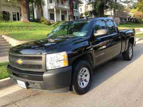 One owner freeway miles. Truck has been flawless. NEW TIRES have less than 5 miles on them. Put them on 1 week ago. I have been so impressed with this truck, the only reason for selling is a new dually truck for towing fire engines. The gas mileage is jaw droppingly good. There are a few small bumps here and there..but in my opinion the truck still shows like new. The best part of all (and only a few people were aware of this at the time) When you ordered a work truck model from GM..a good portion of the front end was black metal and some black resin molded parts. When you ordered any color except black..it looked cheap. HOWEVER..if you ordered a Black silverado work truck..the subtle black pieces on the front end looked like you paid an extra 5k for a very well done body kit in black out. Additionaly, it deleted the door moulding that most people hated and paid body shops to take off. Look at the pics..this truck is drop dead gorgeous.No power windows,doors or cruise control. SOLD AS IS ..ask any questions before bidding. THIS IS A NO RESERVE AUCTION!! Whoever wins ..gets the truck. Have the right to end auction early. go1od luck bidders