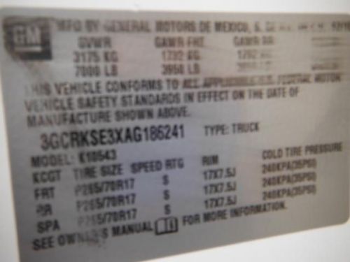 VIN (Vehicle Identification Number): 3GCRKSE3XAG186241