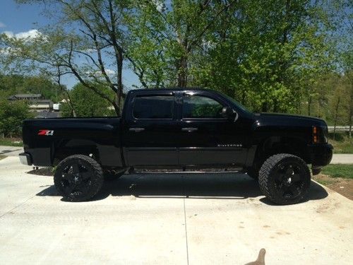 2010 Chevy Silverado 1500 4x4 crew cab, black on black on black. Professionally installed 7 1/2" lift kit, 22" rockstar wheels with 35" nitto trail grapplers, magnaflow exhaust, k&n cold air intake, recon halo headlights and recon smoked led taillights, black running boards, and I also have a set of bushwacker fender flares still in the box that I never installed. This truck is in great condition never in an accident. Some light scratching (its a lifted BLACK truck, nothing that a little wax or buffing wont fix) 5.3 V8, 6 speed automatic transmission, tow mode, onstar, xm satellite radio, mp3, ect. Still under gm 100,000 mile warranty. This is a great truck, gets compliments daily. Please call if u have any questions 606-571-5593.