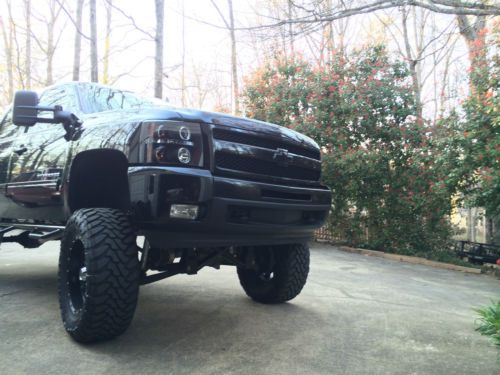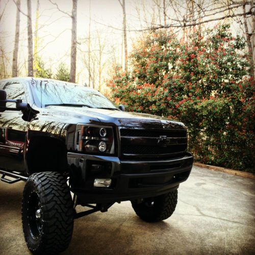 FULLY LOADED, FACTORY LEATHER SEATS, TOWING PACKAGE WITH TOWING CONNECTOR, Z71 PACKAGE, APPRADIO3, WEATHER TECH FLOOR MATS, PRISTINE INTERIOR, SURPER CLEAN EXTERIOR, LIFTED WITH A PREMIUM COGNITO 10-12" LIFT WITH BILSTINE SHOCKS ALL THE WAY ROUND, DEVER LEAF SPRINGS, XD HOSS BLACK 20'RIMS WITH TOYO MT 37X13.50 TIRES 90% TREAD LEFT. FACTORY PAINTED GRILLE TO MATCH PAINT, BUMPERS BLACK TO GIVE A LL BLACK SLEEK LOOK. NFAB STEP RAILS, AND FLOWMASTER DELTA 50 EXHAUST TUNR DOWN AT REAR AXEL. RIDE BETTER THAN FACTORY NO DEATH WOBBLE! HEAD TURNER EVERYWHERE YOU GO. HAS BED COVER, TAILGATE HAS NO EMBLEMS OR LOGOS, VALONT COLD AIR INTAKE. HALO PROJECTOR HEADLIGHTS DONE PROFESSIONALLY. MILAGE WILL CHANGE DUE TO BEING DRIVEN STILL. FINANCED THROUGH CAPITAL ONE ONCE IF SOLD WILL HAVE TITLE SWAPED TO BUYERS NAME.