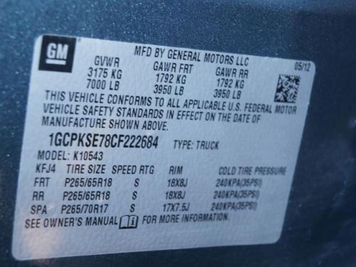 VIN (Vehicle Identification Number): 1GCPKSE78CF222684