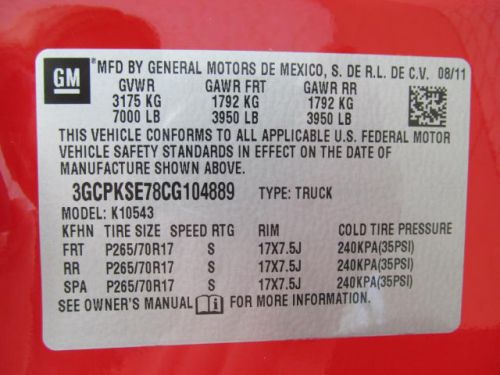 VIN (Vehicle Identification Number): 3GCPKSE78CG104889