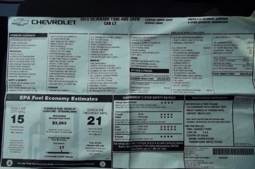 Looks and drives like new with excellent tread and low miles it's a great buy for anyone. Plenty of space for your passengers with the crew cab and a standard sized bed for hauling gives it a great balance. Clean Carfax showing 1 owner with no accidents reported miles averaging 13.8k annually which is less than the standard 15k giving it a cool $540 over the retail value. LT 4x4 trim package with Z71 off road package, V8 5.3 liter Flex Fuel engine, 4 speed automatic transmission with overdrive, Cruise control, Air conditioned with dual climate control, Power windows and locks, AM/FM/CD/MP3/Satellited stereo radio with auxiliary port, Homelink, On Star, Remote start, Powered driver's seat, Front middle seat under and rear cushion storage, 2nd row bench folds up 40/60 split, All season rubber mats, Privacy glass, Rear defrost Rear parking sensors, Bed liner, Tow package with control system, ABS brakes, Alloy wheels Celebrating Our 31st year at same great location! Great Cars, Great Prices with Honesty and Integrity since 1983. We take the fear out of buying a pre-owned vehicle! Vehicle history report available. You can also visit our service department for all your maintenance items. We look forward to seeing you soon!