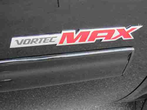 THE TRUCK HAS A WONDERFUL FACTORY BLACK PAINT JOB. EVERYTHING ON THE TRUCK WAS BLACK EXCEPT FOR THE REAR BUMPER AND THE GRILLE WHEN I PURCHASED IT, WHICH I THINK DIDN'T QUITE LOOK RIGHT. SO , I ORDERED A GM PAINTABLE REAR BUMPER AND GRILLE ASSEMBLY, ADDED A BILLET BOWTIE, THEN HAD THEM SPRAYED TO COMPLETE THE ALL BLACK THEME. I TOOK OFF ALL THE BADGES EXCEPT FOR THE RED VORTEC MAX EMBLEMS, GIVES IT A NICE TOUCH I THINK. NOT REALLY MUCH TO SAY ABOUT THE EXTERIOR BECAUSE IT IS BASICALLY A NEW TRUCK. ONLY IMPERFECTIONS I CAN FIND ARE A DING IN THE FRONT FENDER BESIDE THE HEADLAMP ABOUT THE SIZE OF DIME AND A FAINT SCRATCH ON THE FRONT OF THE HOOD. GONNA HAVE THE SCRATCH BUFFED THIS WEEK AND I THINK THE DING CAN BE PUSHED OUT BY A PAINTLESS DENT GUY. I ADDED THE FACTORY 22'' WHEEL AND TIRE PACKAGE THAT GM WAS OFFERING AT THE TIME, IT CAME WITH CHROME 20'' WHEELS BUT THERE WAS TO MUCH GAP IN THE FENDER WELLS WITH THOSE I THOUGHT. THERE IS A SCUFF ON THE PASSENGER SIDE WHEEL FROM SOMETHING, BUT IT IS VERY HIDDEN ON THAT SHINEY CHROME. THE TRUCK SIT A LITTLE HIGHER IN THE REAR, SO I PUT A 2'' LOWER SHACKLE TO LEVEL IT OUT. LOOKS NICE.