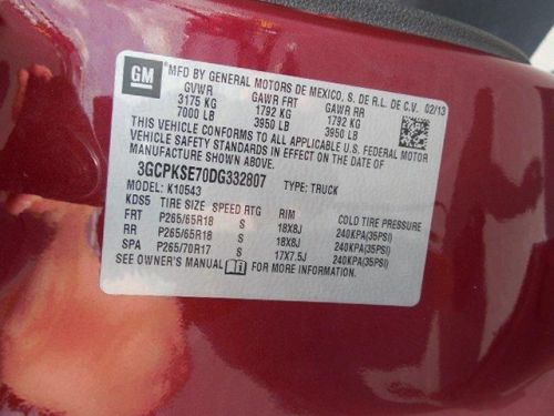 VIN (Vehicle Identification Number): 3GCPKSE70DG332807