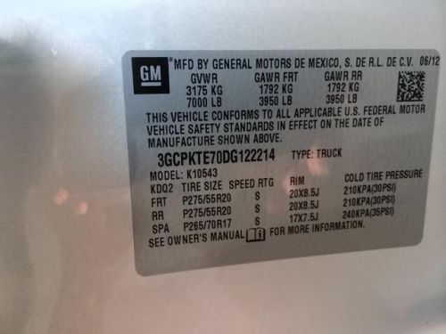 VIN (Vehicle Identification Number): 3GCPKTE70DG122214