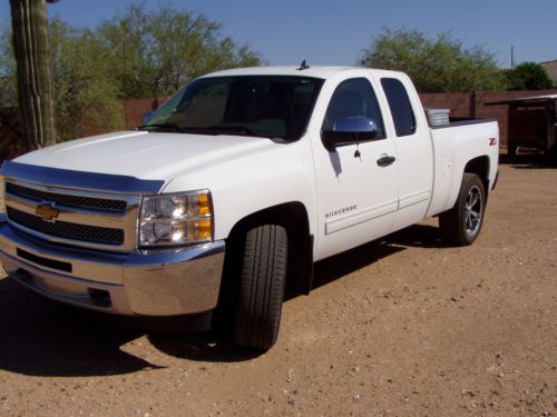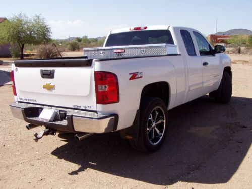 ***For Sale By Owner*** 2013 Chevrolet Silverado Z71 Extra Cab 1500 2WD Pick-up. A beautiful Alpine white over Dove gray cloth interior. Very nicely customized with all you can possibly offer on your truck. The list of add on accessories includes - 20" Liquid Metal Motorsport aluminum alloy wheels with Bridgestone Desert Dueler tires size P275/55R20 with only a few thousand miles on them. The list goes on with an Inyati spray-on bedliner, AZ tinted windows, Craftsman toolbox in aluminum diamond plate, a chrome hood mounted bug deflector, GM mud flaps, dash cover, floor mats, tailgate mounted add on emblems (see photos) and the topper of all is a COMPLETE CUSTOM AFTERMARKET ENGINE TO REAR BUMPER DUAL EXHAUST SYSTEM. This is NOT a cat-back set-up, it's a full, real dual exhaust system that sounds fantastic! The truck is an LT Extra Cab with the Z71 2WD package included, so all the bells and whistles are included, power everything, cruise, cd- satellite radio, OnStar, traction control, anti-lock brakes, security alarm, keyless entry, and a V8 that gets better than 22 miles per gallon on the highway because it has the hybrid engine together with a 6 speed automatic overdrive transmission. As any questions you'd like, this is an outstanding truck that has been pampered since day one, no accidents, all original paint and body, has all the great features for a very reasonable price. The truck has always been in Arizona, no rust issues anywhere, and is still covered by a no cost, fully transferable warranty to 3 years 36,000 miles bumper to bumper, and a 5years 100,000 mile power train warranty. OnStar is also available. Bid often and thanks for looking. Please remember to thank a veteran, and their families for all the sacrifices they continue to make for our great country. God bless all of them and bring everyone home safely.