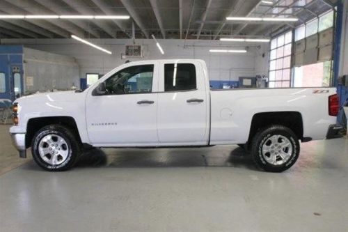 Unlike the competition that uses rebates that can not be used together. Such as USAA, currently own another manufacturers lease or find out that there price does not include the dealerships added equipment, with Parks Chevrolet The price you see is the price you pay! INTERNET PRICE INCLUDES ALL DEALER ADDS!!!!! Are you hunting for a car that you don't have to wonder if it will start in the morning? Well, this Truck will have you excited to pick-up even your mother-in-law. You win!!! 4 Wheel Drive! Internet special price includes all applicable rebates to include the $500 Farm Bureau Rebate and may not be used in conjunction with the special rate incentives. .( All may not qualify for Farm Bureau rebate, Silverado price includes rebates for trading a vehicle that is a 99 or newer model year and truck owner loyalty rebate)! MUST SEE FLEET MANAGER for Fleet pricing! our Internet price may not include FLEET Vehicle adds! - This 2014 Chevrolet Silverado 1500 4dr 4WD Double Cab 143.5 LT with 1LT 4x4 Truck features a 5.3L V8 8cyl Gasoline engine. It is equipped with a 6 Speed Automatic transmission. The vehicle is Summit White with a Jet Black with Cloth Seat Trim interior. It is offered with a full factory warranty. - Four Wheel Drive - Parks Chevy has a longstanding history of making it a pleasant process when buying or servicing your new Chevrolet, offering you guaranteed credit approval and the Triad's best selection... Get the vehicle you want for the payment you need. Minutes from Winston-Salem or Greensboro, Come see why The Little Cheeper Dealer is Worth The Drive!