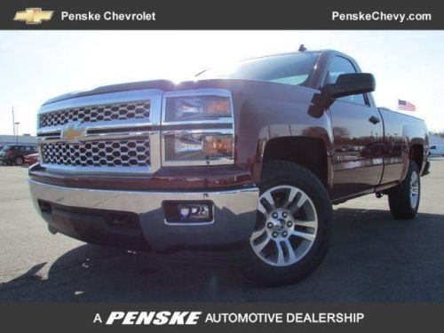 OUR OFFERINGS THE PENSKE PROMISE - The value added customer experience that makes a difference to you. At every turn we are providing confidence in the ownership life-cycle of your vehicle. Whether you decide to purchase, own, or part with your vehicle, you can be assured that the Penske Promise has your best interest in mind. The Penske Promise. Only at Penske Chevrolet. Confidence with every turn. The value added customer experience that makes a difference to you. At every turn we are providing confidence. Please confirm the accuracy of the included equipment by calling us prior to purchase. - This 2014 Chevrolet Silverado 1500 2dr 4WD Reg Cab 133.0 LT with 1LT 4x4 Truck features a 4.3L FLEXFUEL ECOTEC3 V6 6cyl Flex Fuel engine. It is equipped with a 6 Speed Automatic transmission. The vehicle is DP RUBY MET with a JET BLK CLOTH interior. It is offered with a full factory warranty. - Four Wheel Drive - This vehicle is just a small representation of our inventory. We have many similar vehicles to the one you are looking for available. Please call me to discuss all your options. 99% Approval at www.penskeapproved.com. Pricing includes all applicable rebates. Rebates may vary depending on model. Express Price may not be valid with some offers. Other restrictions may apply.