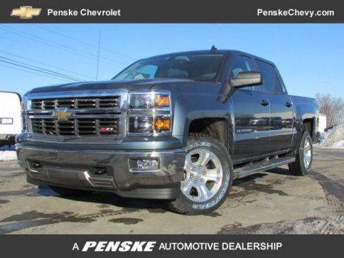 WHO WE ARE THE PENSKE PROMISE - The value added customer experience that makes a difference to you. At every turn we are providing confidence in the ownership life-cycle of your vehicle. Whether you decide to purchase, own, or part with your vehicle Please confirm the accuracy of the included equipment by calling us prior to purchase. - This 2014 Chevrolet Silverado 1500 4dr 4WD Crew Cab 143.5 LT with 1LT 4x4 Truck features a ENGINE, 5.3L FLEXFUEL ECO 8cyl Flex Fuel engine. It is equipped with a 6 Speed Automatic transmission. The vehicle is BLUE GRANITE with a JET BLK/DK ASH CLOTH interior. It is offered with a full factory warranty. - Four Wheel Drive - This vehicle is just a small representation of our inventory. We have many similar vehicles to the one you are looking for available. Please call me to discuss all your options. 99% Approval at www.penskeapproved.com. Pricing includes all applicable rebates. Rebates may vary depending on model. Express Price may not be valid with some offers. Other restrictions may apply.