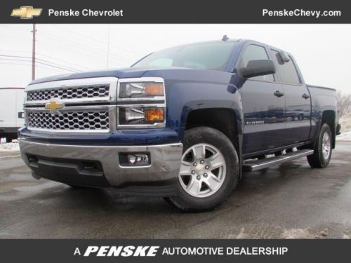 WHY BUY FROM US THE PENSKE PROMISE - The value added customer experience that makes a difference to you. At every turn we are providing confidence in the ownership life-cycle of your vehicle. Whether you decide to purchase, own, or part with your vehicle - This 2014 Chevrolet Silverado 1500 4dr 4WD Crew Cab 143.5 LT with 1LT 4x4 Truck features a 4.3L FLEXFUEL ECOTEC3 V6 6cyl Flex Fuel engine. It is equipped with a 6 Speed Automatic transmission. The vehicle is BLUE TOPAZ MET with a JET BLK CLOTH interior. It is offered with a full factory warranty. - Four Wheel Drive - This vehicle is just a small representation of our inventory. We have many similar vehicles to the one you are looking for available. Please call me to discuss all your options. 99% Approval at www.penskeapproved.com. Pricing includes all applicable rebates. Rebates may vary depending on model. Express Price may not be valid with some offers. Other restrictions may apply.