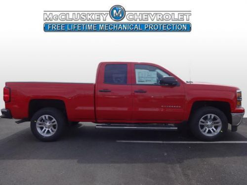 6-Speed Automatic Electronic with Overdrive. Extended Cab! Won't last long! McCluskey Chevrolet's Free Lifetime Mechanical Protection. This 2014 Silverado 1500 is for Chevrolet fanatics looking the world over for that perfect truck. It is nicely equipped with features such as 6-Speed Automatic Electronic with Overdrive, 3.23 Rear Axle Ratio, 40/20/40 Front Split Bench Seat, 4-Wheel Disc Brakes, 6 Speaker Audio System, 6 Speakers, ABS brakes, Air Conditioning, Alloy wheels, Bumpers: chrome, CD player, Cloth Seat Trim, Deep-Tinted Glass, Delay-off headlights, Driver door bin, Driver vanity mirror, Dual front impact airbags, Dual front side impact airbags, Electronic Stability Control, Emergency communication system, Front anti-roll bar, Front Center Armrest w/Storage, Front Chrome Bumper, Front reading lights, Front wheel independent suspension, Fully automatic headlights, Heated door mirrors, Illuminated entry, Low tire pressure warning, MP3 decoder, Occupant sensing airbag, Outside temperature display, Overhead airbag, Overhead console, Panic alarm, Passenger door bin, Passenger vanity mirror, Power door mirrors, Power steering, Power windows, Radio data system, Rear Chrome Bumper, Rear reading lights, Rear step bumper, Remote Keyless Entry, Remote keyless entry, Speed control, Speed-sensing steering, Split folding rear seat, Steering Wheel Audio Controls, Steering wheel mounted audio controls, Tachometer, Tilt steering wheel, Traction control, Trip computer, Variably intermittent wipers, and Voltmeter. You never know when life is going to throw you a curve, but the advanced braking system will always be there to help stop trouble right in its tracks.