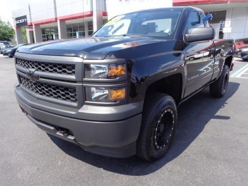 Silverado 1500 Work Truck, 2D Standard Cab, 5.3L, 6-Speed Automatic Electronic with Overdrive, 4WD, Black, Cocoa/Dune w/Leather Appointed Seat Trim, Local Trade, MUST SEE!, NONSmoker, One Owner, and PRISTINE. New Black 2014 Beaver Chevrolet Silverado 1500 Work Truck is a 2D Standard Cab 4WD . This Florida Truck has a 5.3L engine.
