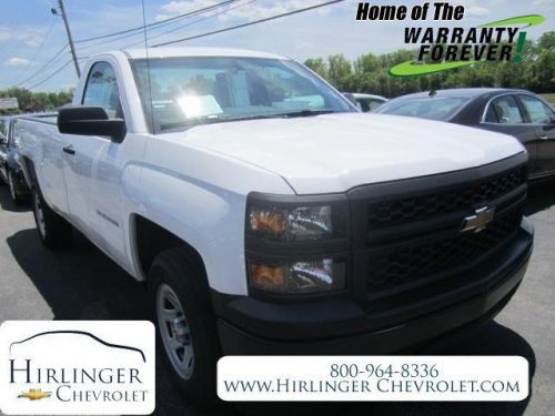 Preferred Equipment Group 1WT, 6-Speed Automatic Electronic with Overdrive, Jet Black w/Cloth Seat Trim, 5.3L V8 355 HP, LOCKING DIFFERENTIAL, and TRAILERING PACKAGE. WARRANTY FOREVER!!! LIFETIME POWERTRAIN WARRANTY AT NO CHARGE!!This hard-working 2014 Chevrolet Silverado 1500 is the truck that you have been trying to find. It is nicely equipped with features such as Preferred Equipment Group 1WT, 6-Speed Automatic Electronic with Overdrive, Jet Black w/Cloth Seat Trim, 5.3L V8 355 HP, LOCKING DIFFERENTIAL, and TRAILERING PACKAGE. This spirited machine can turn the everyday driver into a gearhead as they experience a whole new kind of acceleration and exceptionally potent power. Price includes all rebates and dealer cash. In lieu of special financing. Tax, title, and license fees additional. See dealer for details. While every reasonable effort is made to ensure the accuracy of this data, dealer is not responsible for any errors/omissions which may occur. Please verify all information with dealer sales . Must show proof of current ownership and trade a 1999 or newer vehicle on certain vehicles. Residency restrictions may apply and not everybody will qualify for all incentives. See dealer for details. CONTACT GARY, Mark, OR MIKE AT 866-601-6063 FOR A GREAT DEAL ON THIS VEHICLE!