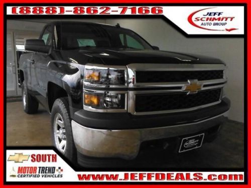 2014 SILVERADO 1500 4WD 2WT REG. ENGINE, 5.3L V8 ECOTEC3, 17' TIRES, ALL TERRAIN, LED LIGHTING, CARGO BOX, TRAILERING EQUIPMENT PKG INCL, AUTO LOCKING REAR DIFFERENTIAL. Now that you have found a vehicle that interests you, please call or e-mail us for availability and to set up a time to come in to see it. Why buy from us? Jeff Schmitt Auto Group is now 1 of only 27 MOTOR TREND CERTIFIED dealers in the United States!! All of our select Motor Trend Certified Vehicles include: 1 year EasyCare Dent Repair, 1 year EasyCare Keycare, Elite Service Program, 72 Hour Exchange Policy, and our Best Value Guarantee! E-mail or call us to check availability!!! See this Silverado 1500 at Jeff Schmitt Chevrolet in MIAMISBURG!!!! ***Prices do not include tax, title, license, documentation fees, or any dealer add-ons. Advertised sale price may include rebate or incentive. See dealer for details.*