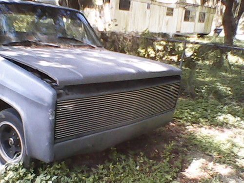 1985 Chevy stepside pickup. It has a custom front end with phantom grill, rear end with caddy taillights and sealed tailgate. Lowered. Mag wheels. Shaved door handles. PS/PB, A/C, but not hooked up, Sunroof, Stereo/CD player. It has a 350/350 auto, Hooker Headers. Will need carb and fuel pump in order to run. Will start up when gas is poured down carb. All lights work as they should. Interior needs to be finished. Brakes are good, tires are fair. Let's face it guys, the hard work is 90% done. When finished, this truck will turn heads. Would like to see this truck finished since I'm unable to do it due to an accident. Truck is being sold AS IS. Buyer is responsible for shipping. Can store vehicle a month if needed if paid in full. Oh, and it does have a clear title.