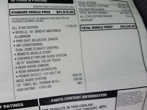 Hail Sale New 2014 Chevy 1500 Crewcab 4x4 All-star Edition Demo $10,000 Off Msrp on 2040-cars