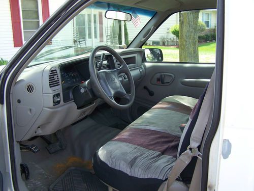 2000 CHEVY 2500 2WD REGULAR CAB LONG BOX WT MODEL has air and power steering and brakes. not many options on a wt model truck. this truck runs down the road good and starts first time every time. no smoking when started or running down the road. air blows ice cold. gas gauge is a little fussy as is the radio. truck has osme bruises and some paint peeling off as pretty much all the white gm vehicles did in the early 2000 model years and some rust spots but not to terribly bad mostly surface rust with a few holes but nothing to hurt the performance of this truck. tailgate handle also needs replaced. thanks for looking fly in and drive it home. i will pick you up at the flint/ bishop airport if you decide to fly in for it. looking to get 3000 for the truck but do not be afraid to make me an offer, worst i can say is no. i accept paypal for payment or cash when you pick it up, 500 dollars deposit due as soon as price is agreed upon, no exceptions. please do not make me an offer then decide you do not have the money or your wife said you can't buy it or whatever, e-bay is not cheap to sell a vehicle on and i do not need to spend time trying to fix a problem caused by someone else. sorry to be this way but :(