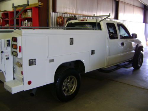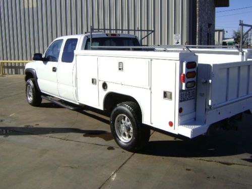 2001 chevrolet 2500 HD extened cab pickup with rawson koening service bed with flip tops, tommy gate, custom ladder rack, new michelin tires, custom wheels, nerf bars, new fuel pump, 8.1 litre (496) cubic inch engine, Allison transmission. runs and drives perfect, interior near perfect, shelf in place of back seat, ac blows cold, everything works perfectly. i bought this truck new and i am the only one to drive it,this truck will pull anything. have the original window sticker, owners manuel and all paper work, serviced on a regular basis, trans, oil changes etc, on of the nicest work trucks around, you wont be disappointed, for more info call(806) 745-6209 Keith , thanks for looking. |