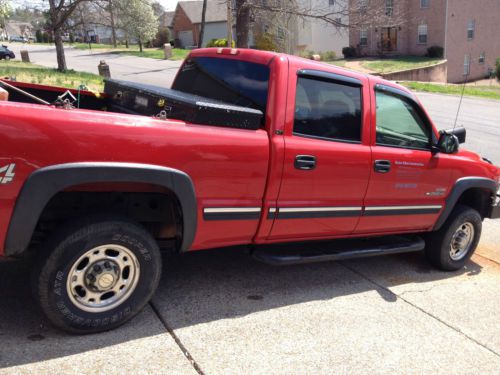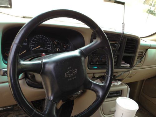 2002 Chevy 2500HD 4x4 Crew Cab Duramax Diesl with 276,500 miles. New injectors and injector pump replaced around 210,000 to 215,000 miles. The injectors were done at the Chevy dealer, and the pump at a local diesel pump shop. The rear seats look original and are in great shape. The front seats are in great shape as well, but are not original, and were replaced by previous owner. I think he bought black seats and tried to have them tanned to match the "Tan" color of the rest of the interior, but they have more of a "Camo" appearance as seen in the photo. Front end control arms, tie rods etc. were all replaced about 1-1 1/2 years ago. Truck has very few blemishes for it's age and mileage. I have always maintained it well since I bought it. It has the LT3 option package, with 6 way power, heated, and lumber support front seats. The truck has large "Ranch Hand" bumpers on the front and back. It has a bumper hitch, and a "hide away" goose neck hitch. It has the Allison automatic transmission, and it was just serviced about 3 months ago. The only leak I have ever noticed, was on the power steering pump, but I put in some sealer, and has not leaked again. I put on a "Nicktane" adapter for the fuel filter, so that the filter can be changed easier, and I use a Cat filter that filters the fuel to a finer level then the standard Duramax filters to help prolong the injector life.The truck is used daily for work, so it is very dependable, and it will definitely have more miles on it than I have listed above by the time this auction ends. It has the LB7 engine, which is the most fuel efficient, and least pollution controlled duramax engine. I have owned it for 3 years, and it has been a very good truck, and see no reason why it won't continue to be. The only thing I know for sure that it will need is a new set of tires in about 5,000 or so miles. There is a $500 non-refundable deposit due at the end of the auction, with the remaining balance due in full, and all funds verified at my local bank, cash or check, before the truck will be released. Winning bidder is responsible for picking up the truck.