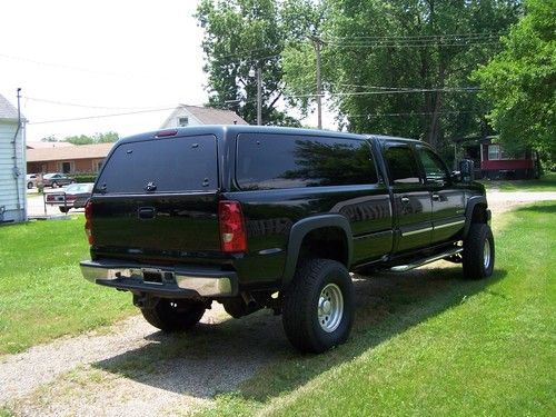 Up for auction is my 2003 Chevy Crew Cab Silverado 2500 HD 4x4. It has an 8.1 B.B. 496 cu. in. gas engine with 117K miles and runs like new. The transmission is an Allison Auto, shifts perfect, the rear ends are Dana 3:73 gears, the tires are brand new 315-75-16 Wild Country Tires with less than 80 miles on them. The wheels are Eagle alloys. Also has a 6" lift that was done by the GM Dealer when it was bought new, they also put on the step bars, topper and rug liner. The exhaust is true dual that has a great deep sound. Gas milage all around gets 14 depends on how you drive it. The interior is in great condition for a 2003, the color is carcoal grey. This truck is loaded with all the options. This truck has been owned and serviced by a certified mechanic. I'm sure there is something I forgot to mention, so you can email or call me @ 217-725-6960, leave message I will return your call. Thank you for bidding.