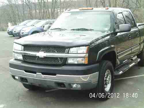 ONE OWNER, CARFAX CERTIFIED, 2003 CHEVROLET SILVERADO 2500HD CREW CAB 4WD WITH 6.6 LITER DURAMAX DIESEL ENGINE! THIS ONE OWNER VEHICLE, OWNED AND PAMPERED BY A 72 YEAR OLD MAN IS THE TRUCK YOU WANT!! NON-SMOKER VEHICLE!! EQUIPPED WITH POWER WINDOWS, POWER LOCKS, POWER FOLD IN MIRRORS WITH BUILT IN TURN SIGNALS, POWER SEAT, AM/FM CD, KEYLESS ENTRY, CHROME STEO BARS, CHROME BED RAILS, BEDLINER, LOCKING TONN. COVER, BED DEFLECTOR, VENT VISORS, DUAL ZONE CLIMATE CONTROL, WHEEL FLARES, TOWING PACKAGE, LOCKING DIFFERENTIAL, BUCKET SEATS AND MORE. BRAND NEW INSPECTION!! THE BODY IS IN EXCELLENT SHAPE, THE INTERIOR IS PERFECT AND THE CARPETS ARE IN GREAT SHAPE. THE ENGINE AND TRANSMISSION RUN LIKE THE DAY THE TRUCK WAS BUILT!! NEVER IN AN ACCIDENT, THIS TRUCK HAS PLENTY OF LIFE REMAINING!! WE RESERVE THE RIGHT TO END THIS LISTING AT ANYTIME AND SELL THE TRUCK TO A WALK IN CUSTOMER. IF YOU SHOULD HAVE ANY QUESTIONS REGARDING THIS VEHICLE, PLEASE FEEL FREE TO GIVE ME A CALL AT 267-246-5797. THANK YOU, ANDREW