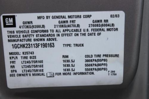 VIN (Vehicle Identification Number): 1GCHK23113F190163