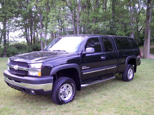2003 CHEVROLET SILVERADO 2500HD EXTENDED CAB (4DR) LS DURAMAX DIESEL SHORT BED 4X4, EXCELLENT CONDITION ,PREVIOUS OWNER WAS A GM RETIRE , NEVER USED TO PULL TRAILERS, ALL FACTORY STOCK, SPARE TIRE NEVER DOWN OR USED, NO FIFTH WHEEL HITCH OR AFTERMARKET POWER CHIPS EVER, ALWAYS MAINTAINED AND SERVICED BY THE LOCAL GM DEALER , OIL CHANGES ALWAYS DONE AT 3,000 MILES, LOADED WITH OPTIONS-POWER WINDOWS, POWER LOCKS, TILT WHEEL, CRUISE CONTROL , INTERMITENT WIPERS, POWER SEAT, POWER FOLDING MIRRORS WITH PUDDLE & TURN SIGNAL LIGHTS, AM/FM/CD/CASSETTE RADIO, FACTORY FOG LIGHT PKG, FACTORY TOWING PKG, SKID PLATE PKG, 40/20/40 FRONT SEAT WITH FOLD DOWN ARMREST/STORAGE, HIGH POLISHED FACTORY ALLOY WHEELS,