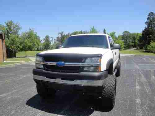2003 Chevy 2500HD, extended cab, long bed, 2 wheel drive, 6.6l duramax diesel, right under 235k miles, truck started out life as a base model work truck, it has manual windows, power locks, touch screen Pioneer in-dash TV/DVD, it has a $2500 upgraded 2003 SS Silverado interior including carpet, power front seats, rear seat, and center console. I have the door panels if you wanted to install them for power windows and to make the heated seats work. There is still the rubber floor mat under the carpet. It has 6" lift with 35x12.5x20 Nitto Trail Grappler tires on 20" black XD Misfit wheels, and wheel spacers. Truck has intake, exhaust, quadzilla programmer, tinted windows, window visors, nerf bars, bedliner and 2 10" subs with amp under rear seat. Truck runs and drives great with no known issues. Truck is very clean as you can see in pics, only damage to to passenger side rear bed, which isnt really noticeable at all. Clear title in hand. Truck is sold as is no warranty. Located in Birmingham AL. Please call with any ?'s 205 283 8184
