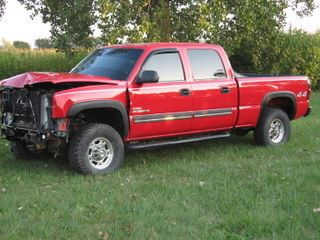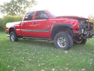 Up for auction is a 2003 chevy LS crew cab duramax 4x4. This truck was involved in a accident at around 35 mph hit the side of a Honda crv. The truck has 134,501 for miles. The factory injectors have already been replaced with an upgraded aftermarket set. The front bumper and brackets have been removed for inspection, the trans cooler and trans cooler line was damaged in the accident they have been replaced with GM parts so the truck can lot drive. Truck has frame damage as noted by pictures. The drivers side has the worse of the damage I do not know whether the rail will need to be replaced or not. As far as parts to be replaced, I can see but NOT GUARANTEE hood, fenders, inner fenderwells, headlights, headlight mount panels, marker lights, fog lights, grille, emblem, bumper with brackets, upper and lower valance, condenser, radiator, fan shroud, clutch fan assembly, passenger and driver airbags, windshield, left mirror, core support is bent on passenger side but very should be very useable, driver side door should be saveable, tires need replaced. Minus the damage shown the rest of the truck is exceptionally clean expect normal chips and a few dings as of with the age and the miles of the truck. The truck has absolutely no rust, rockers and cab corners are perfect except for some rock chips. Also as pictures show rear bumper has two dents. The interior of the truck has not been cleaned but should clean up exceptionally well. All in all this should make someone a very very nice good mileage crew cab duramax for a great price!!!! I reserve the right to end the auction early at anytime and trades and offers are always considered!