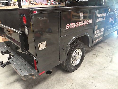 2003 duramax diesel utility bed with 201169 miles still daily driver miles as of 6/10/2013 dependable 4x4 truck with brand new tires new shocks DVD player tinted windows k and n air intake 4 in exhaust sirius xm receiver bose surround sound power windows locks utility bed bought 4/10 . its a work truck minor scratches tear in seat dent in bumper odometer reads in french i am sure simple reset will solve driver side rocker panel has been repaired any questions call 618 384 0095