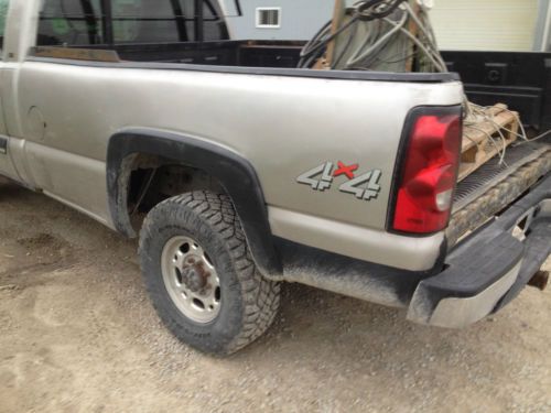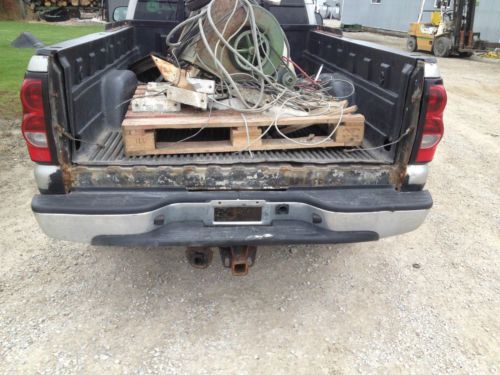 i got for sale a 2004.5 chevrolet silverado with the lly duramax diesel engine. (this is the updated engine no injector problems with this truck) the truck has 281000km on it which works out to 175336 miles so it has lots of life left in it. the engine runs very well without missing it starts well in the cold, and the transmission shift very well but thats to be expected from an allison. the tires are like new on it, i would say they are about 85 to 90%. the seats are in very good condition without any rips or sagging, (very comfortable) the heat works wel on it but the ac im not sure about it but it will prob need to be filled, the engine is the good 6.6 LLY duramax so are still easy to work on, it has an cold air intake on it, the exhaust has been cut right after the catelyc converter for better flow, very strong truck for it not having a programmer. the truck does have some bad things on it, the box has a dent as seen in the pictures and some rust starting, the rocker panel on the drivers side has some holes on it seen in the picture. the back of the just above box has a small dent, the truck mechanically is good but cosmetic wise it needs some love but give it a paintjob and you got yourselve one good and nice truck. I HAVE A LOW RESERVE PRICE ON IT> if you have any further question email me trough ebay or call or text me at 1-519-330-0868