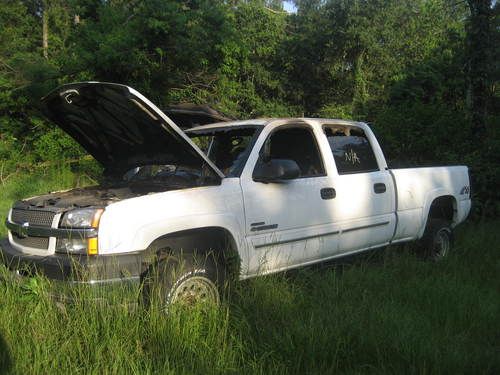 2004 Duramax Engine, Allison Transmission, 4X4, 4-door cab, 6' 6" bed with liner. Due to a short in the dash, all electrical is gone, cab is burned out, all wiring and everything plastic is gone from engine. Entire drivetrain is in good shape including engine, transmission, transfer case and differential. The body is dent free except for the front edge of the hood (opened by fire department) 228K miles on truck, new transfer case in at 180K. Original owner, clear title.