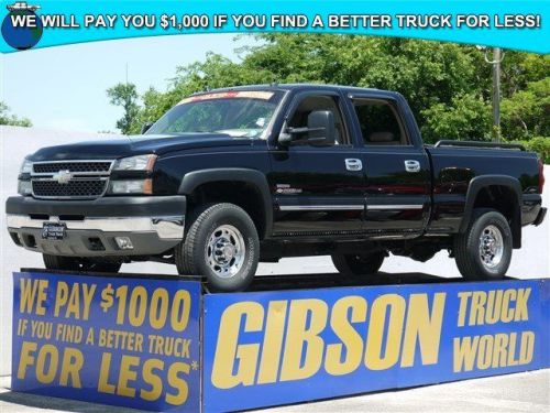 WWW.GIBSONTRUCKWORLD.COM*2005 Chevy Silverado 2500 LT Leather Crew Cab Duramax Diesel Allison Transmission *1 year REAL FREE BUMPER TO BUMPER WARRANTY honored anywhere in the United States with our exclusive 15 DAY RETURN/EXCHANGE POLICY! That is how confident we are in our trucks! Do not make a $3K+ mistake, B4 you buy a used truck demand to see shop bills & have the truck inspected by a 3rd party! Riding on a nice set of Michelins, $500 spray bed liner, $300 brush guard, $275 roll up tonneau cover, $200 chrome bed rails, power heated leather seating with memory, nerf bars, CD player with Bose sound, steering wheel controls, tilt steering, cruise control, OnStar, keyless entry with alarm, towing package, power windows, power mirrors, power door locks*Gibson is the only dealer that gives a REAL FREE 12 MONTH BUMPER TO BUMPER WARRANTY VALID ACROSS THE UNITED STATES, 12 MONTHS FREE MAINTENANCE ($1,000 VALUE!) FROM OUR 23 BAY SERVICE DEPARTMENT AND OUR EXCLUSIVE 15 DAY RETURN/EXCHANGE POLICY! It sounds too good to be true, but it is true! We will pay you $1,000 if you find a better truck for less, Gibson Truck World is Nations ahead of the competition! AT GIBSON TRUCK WORLD AN EDUCATED CONSUMER IS OUR BEST CUSTOMER**Repair Description: Total Invested = $1,462.71*10 Mile Road Test, 135 Point Inspection, Lube, Oil & Filter, Replaced Front and Rear Pads and Turned Rotors, Replaced Mainifold Absolute Pressure Sensor, Replaced Center Support Bearing, Replaced Front Bump Stops, Replaced Wiper Blades, Cleaned and Oiled Air Filter, Replaced Fuel Filter, Replaced 3rd Brake Light, Replaced Tag Light Bulbs, Lubed Steering Shaft, Alignment, Installed Kick Plates and Tail Gate Caps.Battery Condition Test : Good, Alternator Condition Test : GoodLabor time quoted by All Data Universal ShopKey Gibson Truck World in Sanford, FL has the lowest price for used trucks period! Gibson specializes in pre-owned Ford trucks, Dodge trucks, Chevrolet trucks, GMC trucks, Jeeps and SUVs. Gibson Truck World sells, ships trucks across the country & worldwide. We have a large selection of F150, F250, F350, F450, F550, RAM 3500, 2500, 1500 Chevy or GM 3500, 2500, 1500 quality pre-owned pickup trucks.