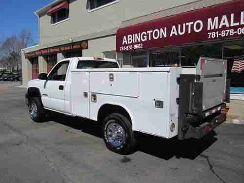 This is a 2006 Chevrolet 2500 HD regular cab with 8' Reading utility body with Thieman power liftgate. Powered by 6.0 V-8 Vortec engine with automatic overdrive transmission. Truck is equipped with 40/20/40 front seat, tilt wheel, am/fm stereo radio, air conditioning and HD trailering package. This vehicle has been serviced by us and runs and drives as it should. 4 tires recently installed. Extended warranty is available at extra cost. This is available for sale locally and may be removed from Ebay at any time. Payment will be Bank check at time of delivery. Please have bank financing approval first before bidding. We also have financing available here. MASSACHUSETTS does not offer temporary plates (tags). There is a $160.00 documentation fee on all sales. Sales tax, plates and title fees are owners responsibility. If you would like to see this and or take a test drive or have any questions?? Call Mike Campo in sales @ 781-878-0682 if interested . Thanks.