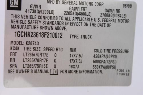 VIN (Vehicle Identification Number): 1GCHK23618F210012