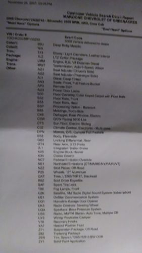 I purchased this truck new from Maroone Chevrolet in Stuart, FL. I have only put 2100 miles on it since then. The truck has always been stored inside. As you can see, it has a southern comfort conversion package. This package includes a six inch lift, Pro-Comp wheels and tires, fender flares, running bars, and a custom wooden steering wheel. I have added an undercover bedcover. The truck is in new condition, and as you can see from the in-voice, I paid $63,862.64 plus the cost of the bedcover. This truck has a very desirable LMM Duramax diesel. The truck's electronics are factory stock and have never been tinkered with. Whomever is interested in purchasing this truck is looking at the nicest used Duramax in the country! The truck is currently stored in Port St. Lucie, FL. I reside in PA, and would send the title and power of attorney to the winning bidder, and would also arrange to have them met where the truck is stored to preview the truck before the purchase. Make no mistake, this truck is MINT! Terms of purchase would be either a certified cashiers check purchased with the seller, or cash. Any questions regarding the vehicle, feel free to call me at (570) 760-5719. |