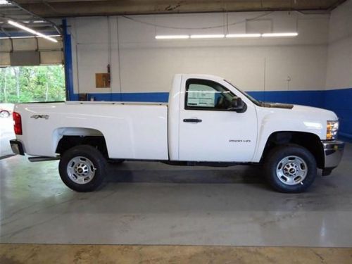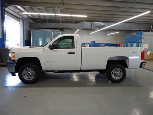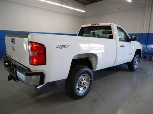 This 2013 Chevrolet Silverado 2500HD 2dr 4WD Reg Cab 133.7 Work Truck 4x4 Truck features a VORTEC 6.0L VARIABLE VALV 8cyl Gasoline engine. It is equipped with a 6 Speed Automatic transmission. The vehicle is Summit White with a Dark Titanium Vinyl interior. It is offered with a full factory warranty. - Air Conditioning, Climate Control, Cruise Control, Tinted Windows, Tachometer, Tilt Steering Wheel, Steering Wheel Radio Controls, Security System, Traction Control, Dynamic Stability, Vinyl Interior Surface, Four Wheel Drive, Heavy-Duty, vortec 6.0l variable valve timing v8 sfi e85-compatible, flexfuel, Floor covering, Steering column, Instrumentation, Driver Information Center with odometer, Warning tones headlamp on, Cup holders, Power outlets 2 auxiliary instrument panel-mounted with covers, Mirror, Visors, Assist handle, Lighting, Coat hooks, dark titanium, Wheels, Tires, Pickup box, Recovery hooks, Tire carrier, Spare tire lock keyed cylinder lock that utilizes same key as ignition and door (Not included when (ZW9) pickup box delete or (VF7) rear bumper delete is ordered.), Bumper, Bumper, Grille, Headlamps, Lamps, Mirrors, Glass, Wipers, Door handles, Rear axle, Suspension Package, Air cleaner, Cooling, Cooling, Battery, Alternator, Frame, Suspension, Suspension, Steering, Brakes, StabiliTrak, Daytime Running Lamps with automatic exterior lamp control, Air bags,Assist handle front passenger (Also includes rear assist handles in the headliner on Extended and Crew Cab models),Coat hooks rear driver and passenger side,Cup holders front (Also includes rear cupholders on Extended and Crew Cab models. Rear cupholders are not included with (AE7) front 40/20/40 split-bench seat.),dark titanium vinyl seat trim,Floor covering Black rubberized vinyl,Lighting interior with dome and reading lights illuminated entry feature and backlit instrument panel switches,Mirror inside rearview manual day/night,Power outlets 2 auxiliary instrument panel-mounted with covers 12- ... Parks Chevy has a longstanding history of making it a pleasant process when buying or servicing your new Chevrolet, offering you guaranteed credit approval and the Triad's best selection... Get the vehicle you want for the payment you need. Minutes from Winston-Salem or Greensboro, Come see why The Little Cheeper Dealer is Worth The Drive!