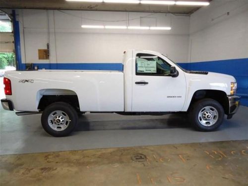 This 2013 Chevrolet Silverado 2500HD 2dr 4WD Reg Cab 133.7 Work Truck 4x4 Truck features a VORTEC 6.0L VARIABLE VALV 8cyl Gasoline engine. It is equipped with a 6 Speed Automatic transmission. The vehicle is Summit White with a Dark Titanium Vinyl interior. It is offered with a full factory warranty. - Air Conditioning, Climate Control, Cruise Control, Tinted Windows, Tachometer, Tilt Steering Wheel, Steering Wheel Radio Controls, Security System, Traction Control, Dynamic Stability, Vinyl Interior Surface, Four Wheel Drive, Heavy-Duty, vortec 6.0l variable valve timing v8 sfi e85-compatible, flexfuel, Floor covering, Steering column, Instrumentation, Driver Information Center with odometer, Warning tones headlamp on, Cup holders, Power outlets 2 auxiliary instrument panel-mounted with covers, Mirror, Visors, Assist handle, Lighting, Coat hooks, dark titanium, Wheels, Tires, Pickup box, Recovery hooks, Tire carrier, Spare tire lock keyed cylinder lock that utilizes same key as ignition and door (Not included when (ZW9) pickup box delete or (VF7) rear bumper delete is ordered.), Bumper, Bumper, Grille, Headlamps, Lamps, Mirrors, Glass, Wipers, Door handles, Rear axle, Suspension Package, Air cleaner, Cooling, Cooling, Battery, Alternator, Frame, Suspension, Suspension, Steering, Brakes, StabiliTrak, Daytime Running Lamps with automatic exterior lamp control, Air bags,Assist handle front passenger (Also includes rear assist handles in the headliner on Extended and Crew Cab models),Coat hooks rear driver and passenger side,Cup holders front (Also includes rear cupholders on Extended and Crew Cab models. Rear cupholders are not included with (AE7) front 40/20/40 split-bench seat.),dark titanium vinyl seat trim,Floor covering Black rubberized vinyl,Lighting interior with dome and reading lights illuminated entry feature and backlit instrument panel switches,Mirror inside rearview manual day/night,Power outlets 2 auxiliary instrument panel-mounted with covers 12- ... Parks Chevy has a longstanding history of making it a pleasant process when buying or servicing your new Chevrolet, offering you guaranteed credit approval and the Triad's best selection... Get the vehicle you want for the payment you need. Minutes from Winston-Salem or Greensboro, Come see why The Little Cheeper Dealer is Worth The Drive!