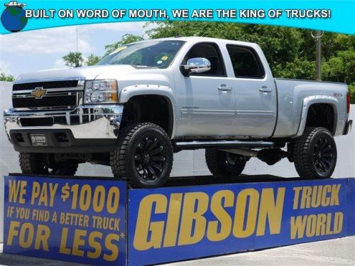WWW.GIBSONTRUCKWORLD.COM*2014 Chevy Silverado 2500 LT Leather Crew Cab 6 Inch Lifted Monster 4X4* Carfax 1 Owner Under full factory warranty, good thru 10/4/16 or 36k miles. Also comes with powertrain warranty, good thru 10/4/18 or 100k miles. Do not make a $3K+ mistake, B4 you buy a used truck demand to see shop bills & have the truck inspected by a 3rd party! Riding high on $5,500 of 6 inch lift kit with a nice set of 35 inch tires and 20 inch Rockstar wheels, $850 upgraded leather, $610 fender flares, $500 spray bed liner, CD player, tilt steering, cruise control, nerf bars, OnStar, keyless entry with alarm, towing package, power windows, power mirrors, power door locksSTILL UNDER FACTORY WARRANTY, Gibson Truck World*Repair Description: Total Invested = $1,416.35*10 Mile Road Test, 135 Point Inspection, Lube, Oil & Filter, Instaled Leather, Replaced Wiper Blades, Tighten All Lift Bolts, Balanced Tires, Alignment, Installed Kick PlatesBattery Condition Test : Good, Alternator Condition Test : Good*Labor time quoted by All Data Universal ShopKey* Gibson Truck World in Sanford, FL has the lowest price for used trucks period! Gibson specializes in pre-owned Ford trucks, Dodge trucks, Chevrolet trucks, GMC trucks, Jeeps and SUVs. Gibson Truck World sells, ships trucks across the country & worldwide. We have a large selection of F150, F250, F350, F450, F550, RAM 3500, 2500, 1500 Chevy or GM 3500, 2500, 1500 quality pre-owned pickup trucks.