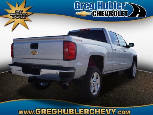 Sunroof, NAV, Heated Leather Seats, 4x4, ENGINE, DURAMAX 6.6L TURBO DIESEL V8, B20-DIESEL COMPATIBLE, Overhead Airbag, Turbo, Tow Hitch, LTZ PREFERRED EQUIPMENT GROUP. Silver Ice Metallic exterior and Jet Black interior, LTZ trim. SEE MORE!======KEY FEATURES INCLUDE: Leather Seats, 4x4, Back-Up Camera, Satellite Radio, Onboard Communications System, Trailer Hitch, Remote Engine Start, Dual Zone A/C, Heated Leather Seats. Keyless Entry, Privacy Glass, Steering Wheel Controls, Heated Mirrors, Alarm. ======OPTION PACKAGES: DURAMAX PLUS PACKAGE includes (LML) Duramax 6.6L Turbo Diesel V8 engine, (MW7) Allison 1000 6-speed automatic transmission, (GT4) 3.73 rear axle ratio, (K05) engine block heater, (PDF) LTZ Plus Package and (IO6) Chevrolet MyLink 8 Diagonal Color Touch audio system with Navigation, LTZ PLUS PACKAGE includes (JF4) power adjustable pedals, (UQA) Bose premium audio system and (UD5) Front and Rear Park Assist. SUNROOF, POWER, WHEELS, 20 (50.8 CM) FORGED POLISHED ALUMINUM includes 18 x 8 (45.7 cm x 20.3 cm) steel spare wheel. Spare not included with (ZW9) pickup box delete unless a spare tire is ordered, LPO, ASSIST STEPS, CHROMED TUBULAR, 6 RECTANGULAR, SEATS, HEATED AND COOLED, DRIVER AND FRONT PASSENGER FRONT BUCKET, LPO, WHEEL LOCKS, SET OF 4, BOSE SOUND WITH 6 SPEAKER SYSTEM, LTZ PREFERRED EQUIPMENT GROUP includes standard equipment, TRAILER BRAKE CONTROLLER, INTEGRATED, ENGINE, DURAMAX 6.6L TURBO DIESEL V8, B20-DIESEL COMPATIBLE (397 hp [296.0 kW] @ 3000 rpm, 765 lb-ft of torque [1032.8 N-m] @ 1600 rpm) Includes (K40) exhaust brake.) NEW. ======BUY FROM AN AWARD WINNING DEALER: While we make every effort to be sure that we are offering you the lowest price the first time, we are not perfect. If you find a lower advertised price somewhere else, simply print it out and bring it in, we will gladly match it for you. Horsepower calculations based on trim engine configuration. Please confirm the accuracy of the included equipment by calling us prior to pu