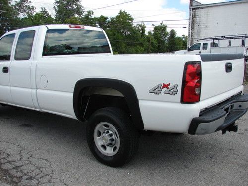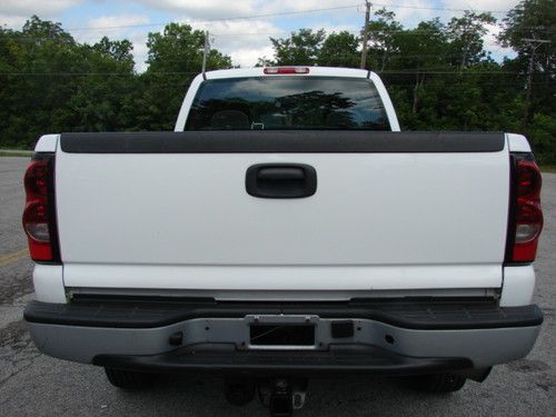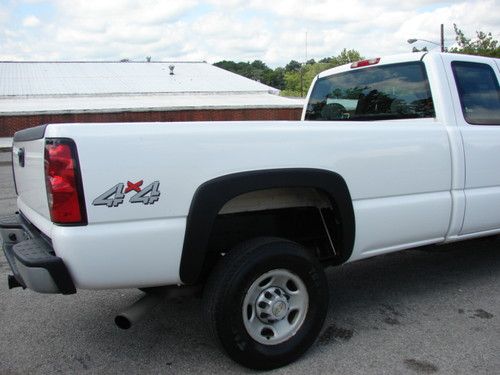 VERY NICE AND CLEAN FLEET MAINTAINED TRUCK FROM THE STATE OF ILLINOIS. THIS IS A 2006 CHEVROLET SILVERADO 2500HD 4X4 EXTENDED CAB TRUCK WITH THE 8 FT. BED. THIS TRUCK IS CLEAN IN SIDE AND OUT. LOOKS AS NICE AS THE PICTURES. BODY PANELS ARE NICE AND STRAIGHT AND ONLY NORMAL MINOR COSMETICS FOUND ON ANY USED TRUCK. NO BODY RUST OR ROT ISSUES. THE BED IS IN GREAT CONDITION AS WELL AS THE TAILGATE. THE BED INTERIOR HAS ONLY SMALL DINGS AND SCRATCHES AND APPEARS LIGHTLY USED. THE DRIVETRAIN IS IN VERY NICE CONDITION . THE POWER TRAIN IS HEADED UP BY A STRONG RUNNING 6.0 VORTEC GAS ENGINE THAT STARTS EASY AND RUNS OUT STRONG AT HIGHWAY SPEEDS. NO CHECK ENGINE LIGHTS OR KNOWN MECHANICAL ISSUES. THE HEAVY DUTY AUTOMATIC TRANSMISSION SHIFTS EASILY IN ALL GEARS AND HAS NO JERK, NO VIBRATION, AND NO HESITATION. THE TRANSFER CASE IS MANUAL FLOOR SHIFT AND ENGAGES EASILY AND FUNCTIONS PROPERLY IN HIGH AND LOW SETTINGS. THERE ARE NO FLUID DRIPS WHEN PARKED OVERNIGHT ON DRY PAVEMENT. THE TIRES ARE NEAR NEW CONDITON AND A MATCHED SET OF 4. THE CAB INTERIOR LOOKS VERY NICE. CLEAN SEATS WITH ONLY A HINT OF WEAR ON THE DRIVERS SEAT EDGE. OTHERWISE THE SEATS LOOK EXCELLENT. ALL THE POWER EQUIPMENT IS FULLY FUNCTIONAL AND WORKS WELL. IF YOU ARE LOOKING FOR A COMPANY TRUCK THIS WILL NICELY DISPLAY YOUR COMPANY LOGOS. IF YOU ARE LOOKING FOR A TRUCK TO PULL THE FAMILY CAMPER YOU WILL BE VERY HAPPY WITH THIS ONE. THIS TRUCK HAS NEVER BEEN FIFTH WHEELED AND THERE ARE NO PROVISIONS FOR THIS TYPE OF TRAILERING. THE TRUCK DOES HAVE THE HEAVY DUTY TOWING PACKAGE AND A REAR TRAILER HITCH WITH ELECTRIC PLUG IN. AS NICE AS THIS TRUCK IS IT WILL BE DIFFICULT TO ONE COMPARABLE AND WITH OUR LOW LOW SPECIAL INTERNET PRICE THIS ONE WILL NOT LAST LONG. CALL 859-588-1485 FOR QUESTIONS.