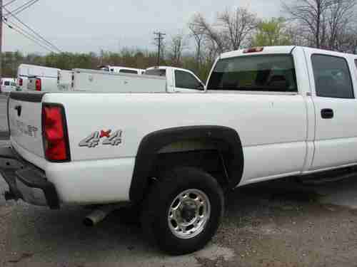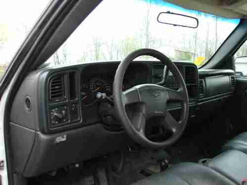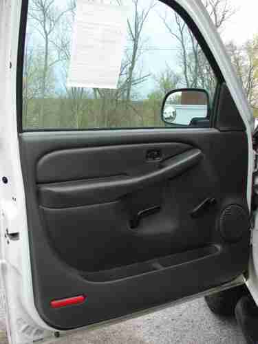 GOOD DEAL ON A GOOD RUNNING WORK SERIES TRUCK WITH HIGHWAY MILES. THIS IS A ONE OWNER FLEET UNIT FROM A UTILITY COMPANY IN SOUTH CAROLINA THAT JUST REMOVED IT FROM SERVICE. THIS TRUCK IS A GOOD DRIVER AS IT STARTS EASY, SHIFTS THROUGH ALL GEARS WITH OUT HESITATION. THE 6.0 V8 GAS ENGINE STILL RUNS STRONG(NO MISS,NO ROUGH IDLE OR SPUTTER AT ACCELLERATION AND IT HOLDS EXCELLENT OIL PRESSURE. THE TRANSFER CASE IS MANUAL SHIFT AND FUNCTIONS PROPERLY IN HIGH AND LOW GEARS. THE BODY LOOKS VERY GOOD FOR THE MILES. THE WORST SPOT IS ON THE DRIVERS SIDE BED WHERE A HEADACHE RACK WAS MOUNTED. THERE IS A CRACK RUNNING DOWN FROM THE HOLE AT THE FRONT. THE FRAME LOOKS GOOD WITH ONLY NORMAL ETCHING FOR THIS YEAR MODEL. THE BED FLOOR AND WHEEL WELLS LOOK GREAT FOR A WORK TRUCK. THERE IS A RUBBER MAT THAT LOOKS LIKE IT HAS BEEN IN THE BED MOST OF THE TIME. THE TAILGATE HAS BEND FROM THE INSIDE OUT WHERE SOMETHING HAS ROLLED IN TO IT. THE TRUCKS INTERIOR WILL CLEAN UP VERY NICELY. THE TRUCK HAS NOT BEEN DETAILED AND YOU ARE SEEING IT AS WE RECEIVED IT. THE TIRES ARE AVERAGE WITH SOME MILES YET TO GO. MISSING ALL 4 CENTER CAPS FROM THE ALUMINUM WHEELS. OVERALL IF YOU ARE LOOKING FOR A WORK SERIES TRUCK AND DO NOT WANT TO SPEND ALOT OF MONEY THIS IS ONE YOU CAN BUY AT A GREAT PRICE AND DRIVE AWAY KNOWING YOU SAVED THOUSANDS. CALL 859-588-1485 FOR QUESTIONS.